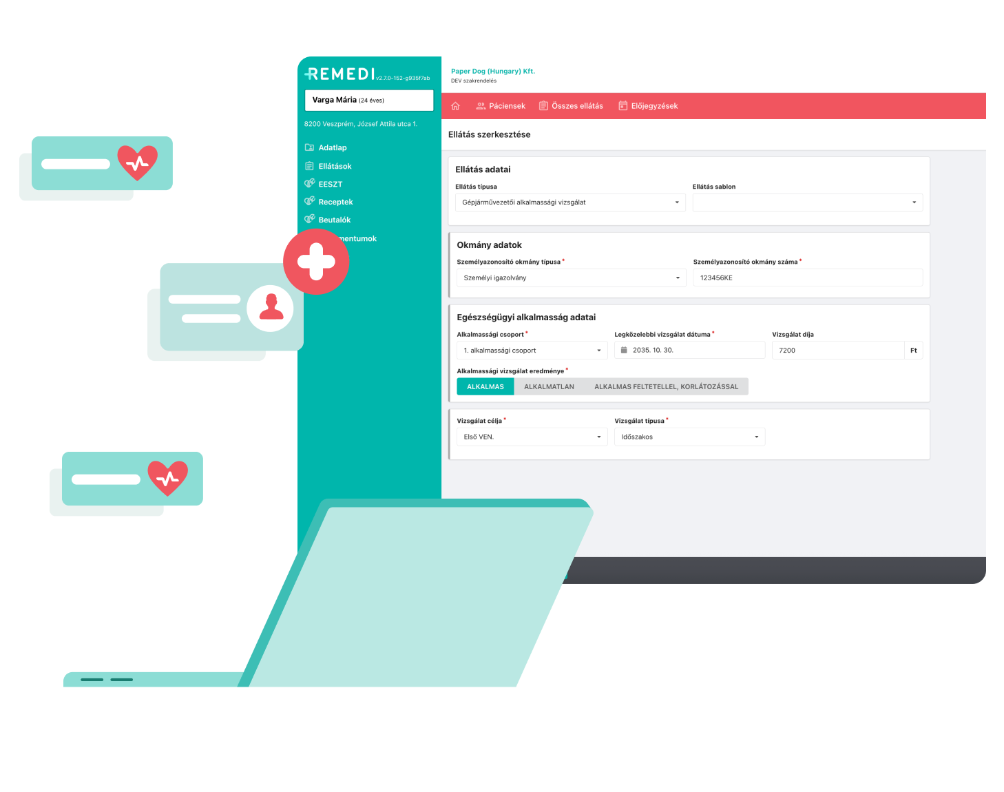 A modul segítségével rögzíthető és kiállítható az elektronikus alkalmassági vélemény a gépjárművezető egészségügyi alkalmasságáról. Az adatok közvetlenül az EESZT-be kerülnek feltöltésre, megfelelve a vonatkozó jogszabályi előírásoknak, automatikusan továbbításra kerül a megfelelő szakrendszerek felé.